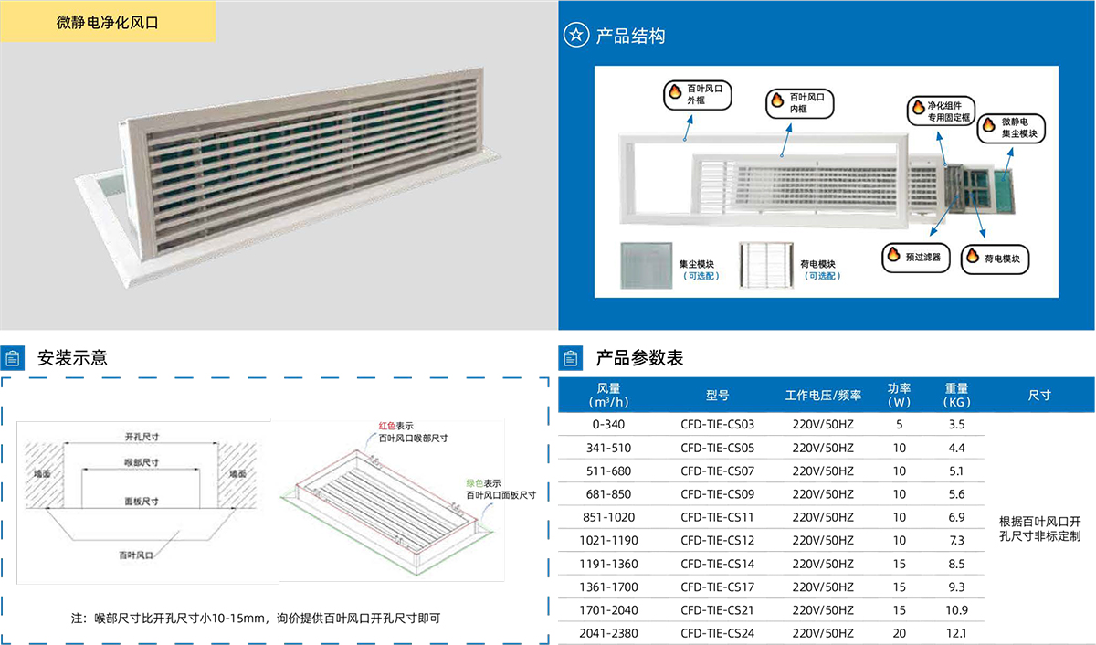 工作原理:產(chǎn)品原理 空氣中含有粉塵顆粒的氣體在經(jīng)過微靜電凈化風(fēng)口時,首先大的顆粒物會被預(yù)過濾器攔截濾除,繼續(xù)前進到電離區(qū),電離區(qū)采用薄金屬板和電離絲組合而成,電離絲與板間產(chǎn)生電暈放電,通過電暈放電使塵埃微粒帶電,同時離子殺滅微生物。帶電微粒隨后進入蜂窩狀集塵區(qū),該區(qū)域以電介質(zhì)為載體形成強電場。在電場作用下,帶電塵埃和細菌顆粒被高效吸附于中空腔體內(nèi)壁。 產(chǎn)品特點 1、產(chǎn)品結(jié)構(gòu)為ABS門鉸式百葉風(fēng)口、初效過濾網(wǎng)、微靜電凈化單元荷電模塊、微靜電凈化單元集塵模塊四段式一體結(jié)構(gòu)組成。能夠同時滿足除塵和殺菌的要求。 2、門鉸式...
